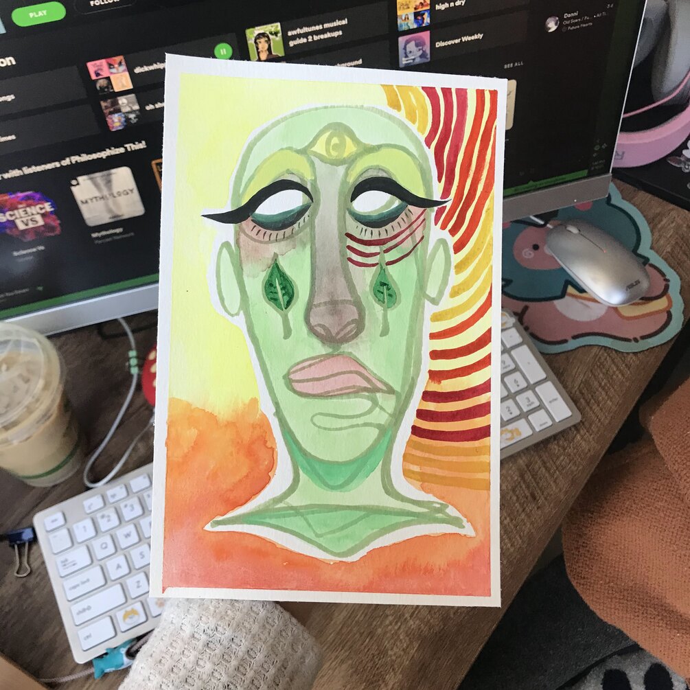 this original painting is roughly 10" x 7" in size and was created using gouache paints, alcohol based markers.